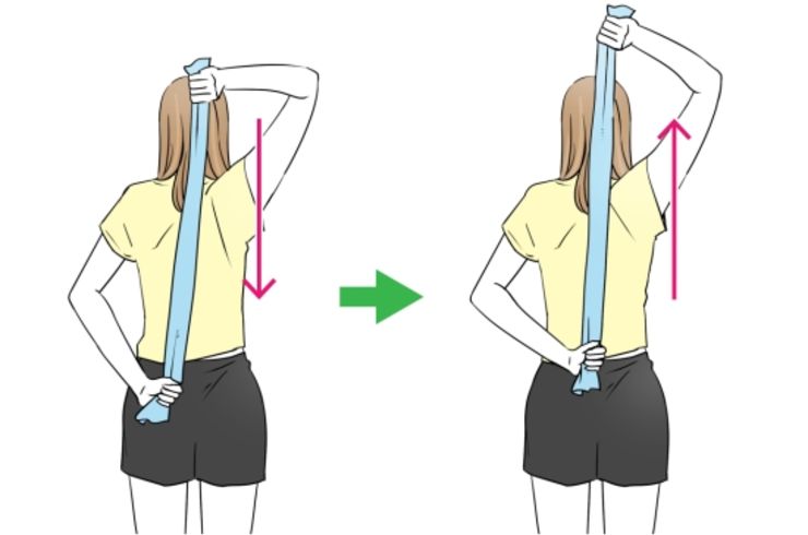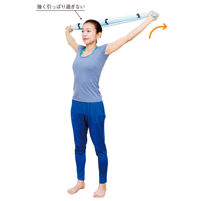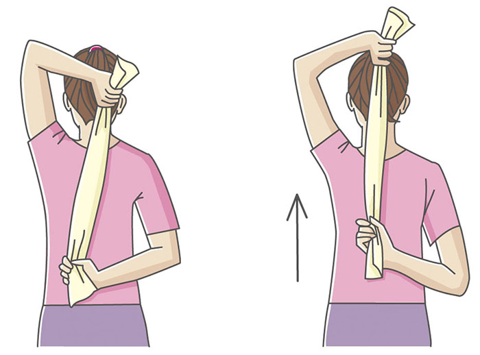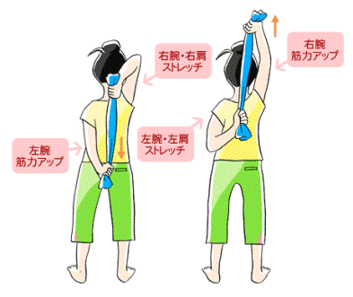 しなやかで健康な体をつくる!ほぐしストレッチ肩甲骨をほぐして背中を引き締める タオルの上げ下げ。