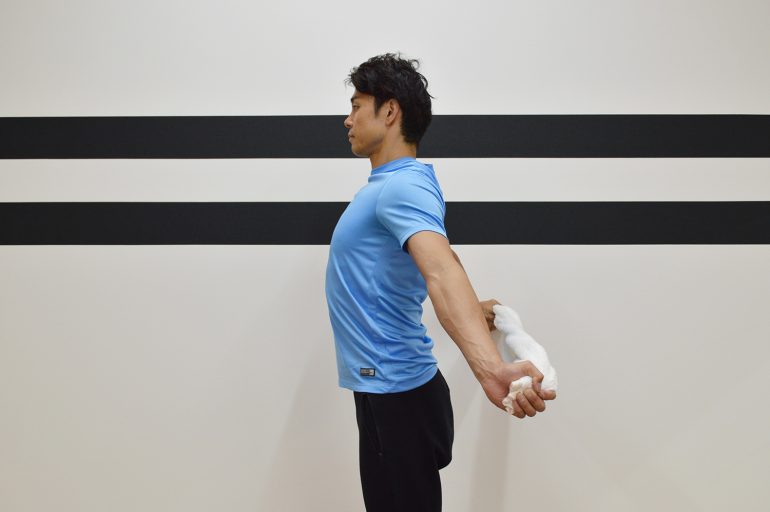 タオルを使った肩こり改善方法アナトミーストレッチ。