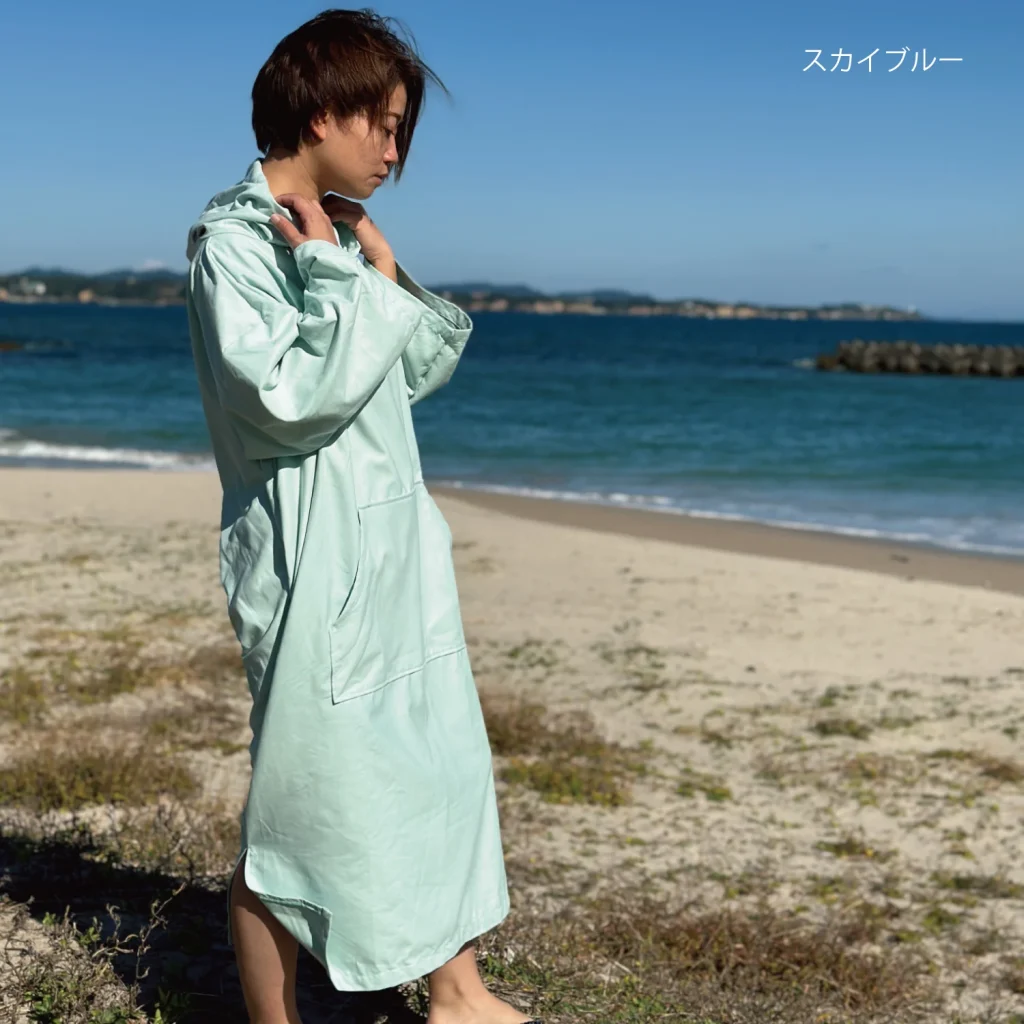 サウナ 普段着にもなる多機能ポンチョ!ロッカーの鍵や財布をしまえるポケット付きMADURO ONLINE マデュロオンライン。