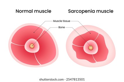 サルコペニア、筋量減少医療計画。人体画像を用いたベクターイラスト による正常比較加齢過程で萎縮した健康な筋肉量と弱い古筋。」のベクター画像素材 ロイヤリティフリー2313758173Shutterstock。