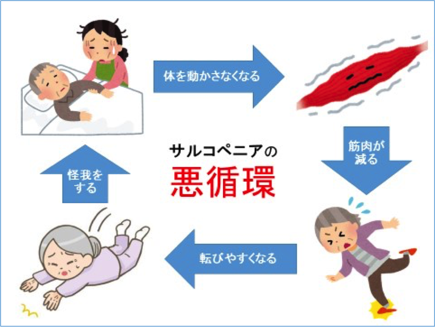 低栄養・サルコペニアの悪循環をイラストでご紹介 – すぐに使える!リハビリのイラスト集。