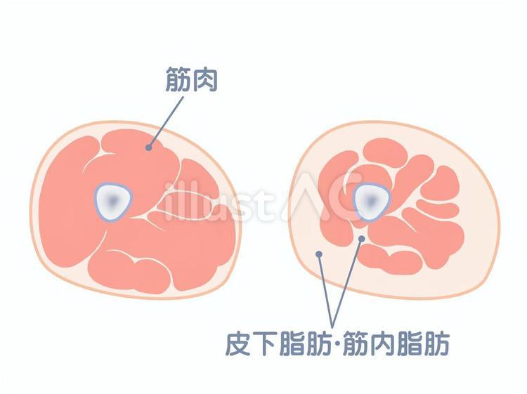 正常な筋肉とサルコペニアの筋肉 断面 イラスト - No: 24657239無料イラスト・フリー素材なら「イラストAC」。