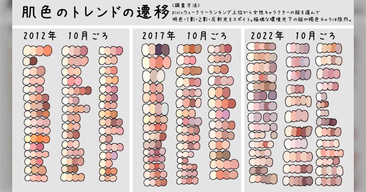 人物イラストの肌の色を調べてみたら、ここ10年での大きな変化が見えてきた「凄い調査」「実感と合ってる」 - Togetter。
