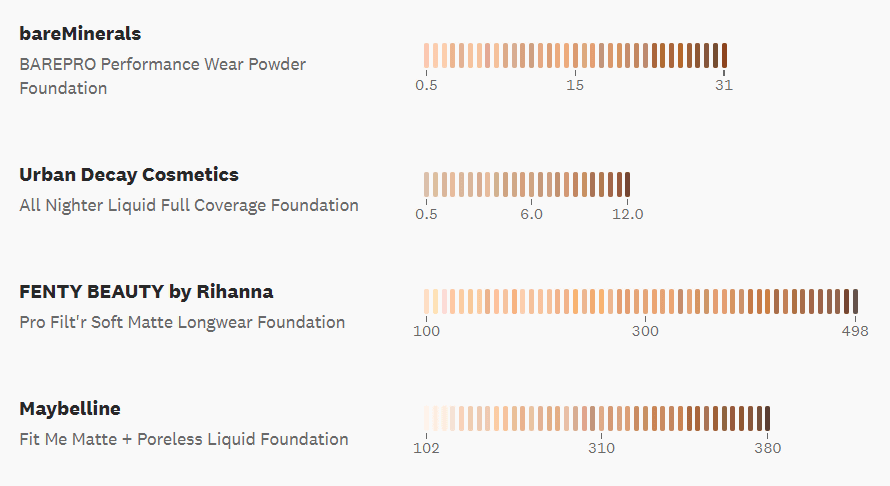 化粧品の「肌色」に無意識の差別が根付いていることがわかるグラフ - GIGAZINE。