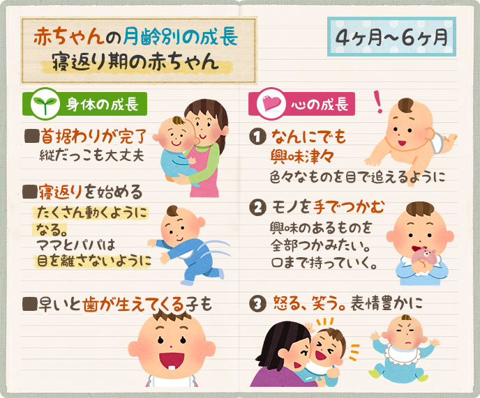 赤ちゃんの成長を月齢で見比べ!4~6ヶ月の変化と発育Q&Aベビリナ。