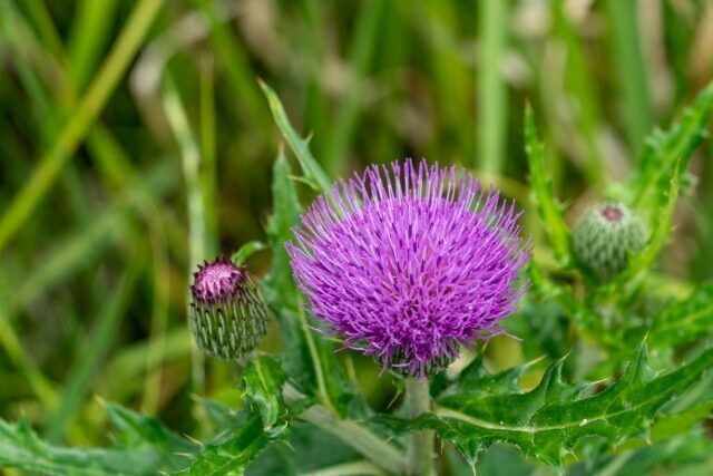 あざむ』という日本語があるそうです。 驚き呆れる、興醒めするという意味だそうです。 アザミはその『あざむ』から名前がついたそう。アザミといったら葉にあるトゲです。 美しいけれど、トゲがあって興醒めするということでしょうか。 アザミの花言葉には、『独立。