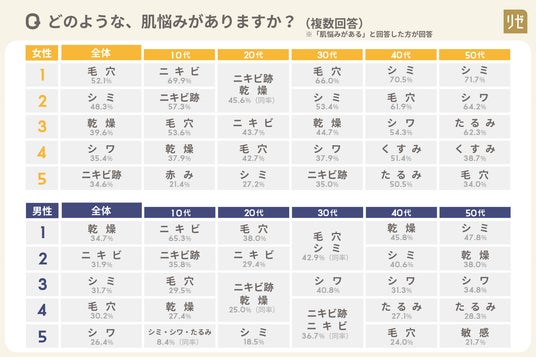 □ 10~50代の男女1000名へ「肌悩み」を調査 性別と加齢 世代 によって「肌の悩み」は変化 ~創業から14年・初2024年1月から「肌治療」の導入決定 医療脱毛専門院「リゼクリニック」医療法人社団風林会 リゼクリニックのプレスリリース。