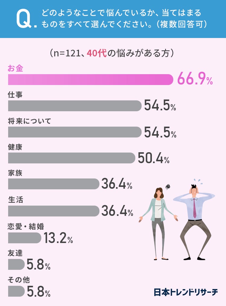もっとも悩みがある年代は? 40代の男女のうち80.7%が「現在悩みがある」株式会社NEXERのプレスリリース。