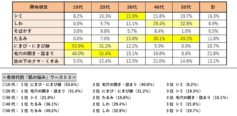 年代別の肌悩み 10~50代女性アンケート調査結果女性ヘルスケア専門のビジネスメディア「ウーマンズラボ」。