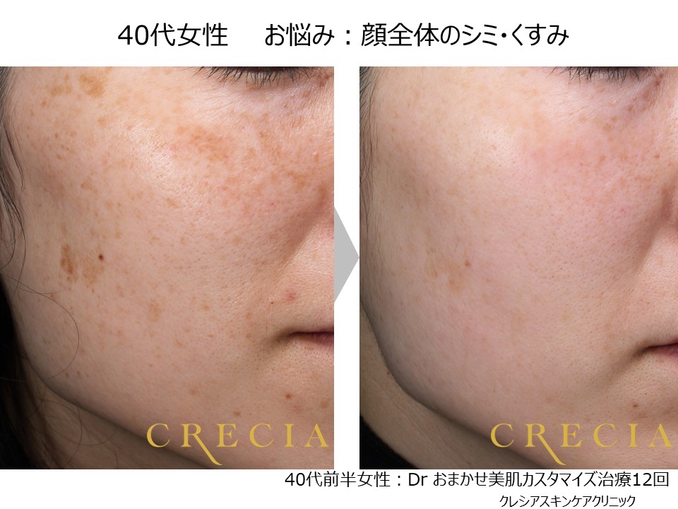 顔全体のシミ・くすみが気になる 40代女性葛飾区の美容皮膚科:クレシアスキンケアクリニック。