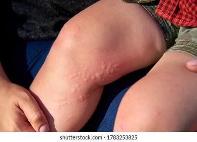 少年の脚のやかん草から火傷し、植物に対するアレルギー反応。写真素材1783253825Shutterstock。
