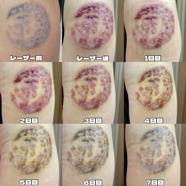 腕の黒タトゥーが全部消えるまでの全経過。キレイに消えましたね。ピコレーザーラボ。