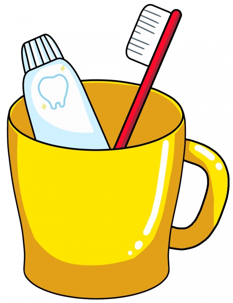 手書きイラスト無料手書き 歯ブラシ コップ 歯磨き粉イラストダウンロード。