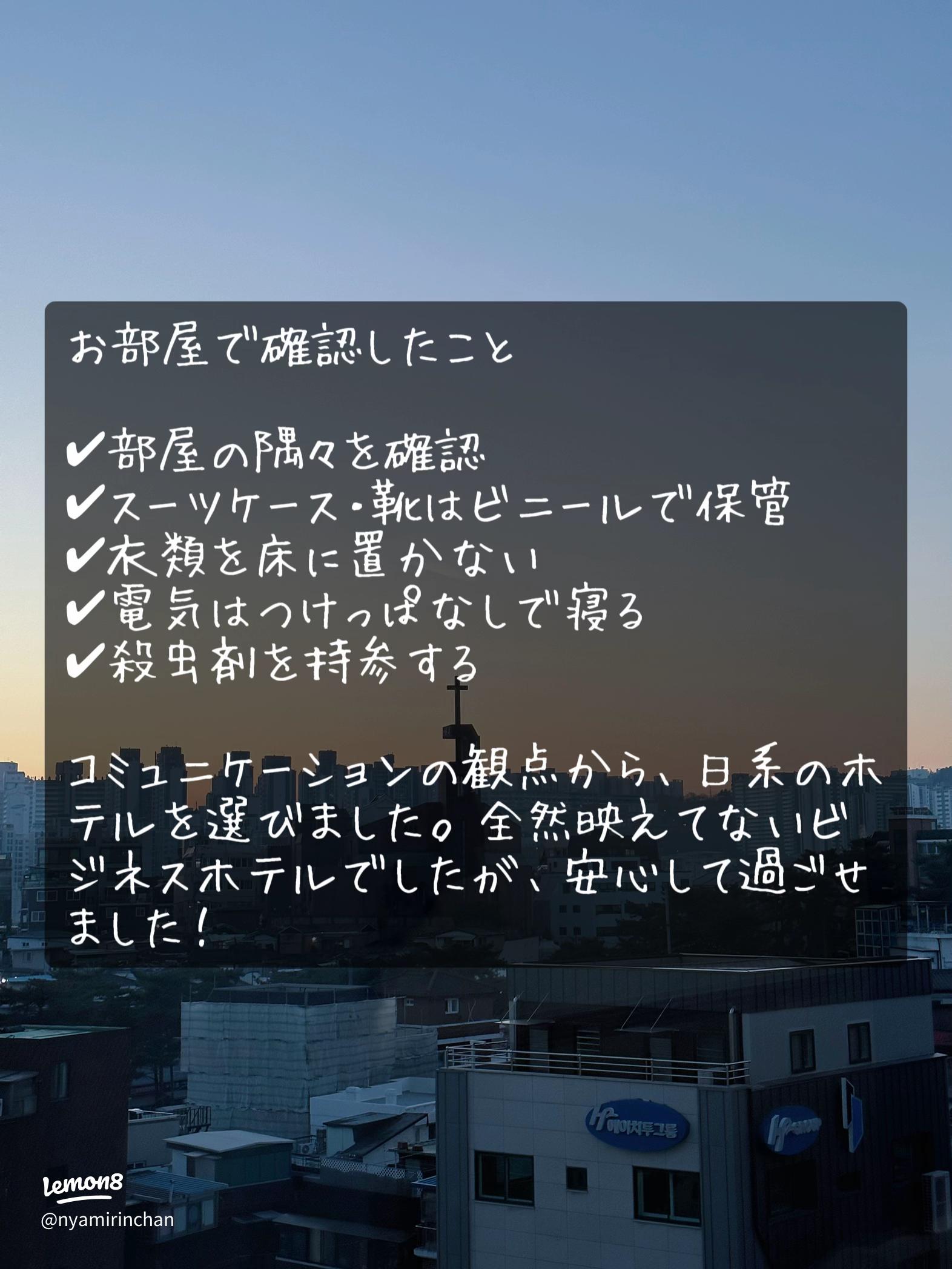 東大門の日系ビジネスホテルでトコジラミから守られた快適な滞在。