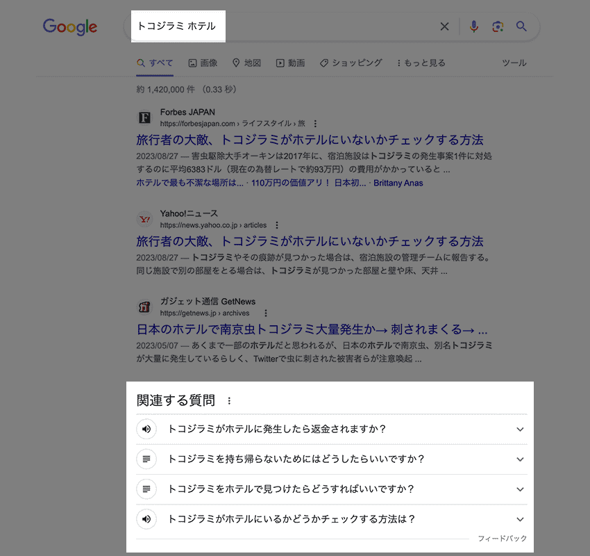 トコジラミ ホテル」のサジェスト表示を回避しなければならない理由。
