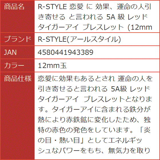 恋愛 に 効果、運命の人引き寄せる と言われる 5A 級 レッド タイガーアイ ブレスレット12mm玉。
