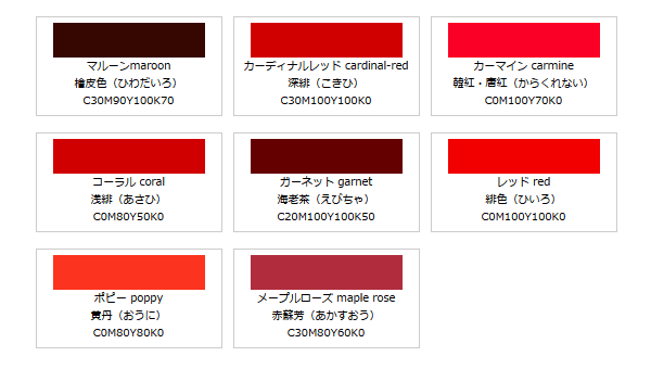 赤の代表色 色名の覚え方・色彩感覚向上ポーポー・ポロダクション。