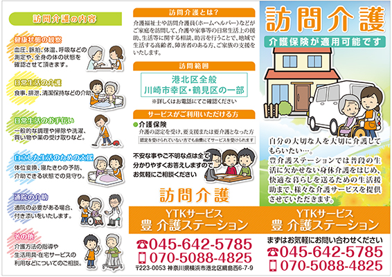訪問介護ステーションの三つ折りパンフレット 名古屋のホームページ制作会社株式会社ZoDDo。