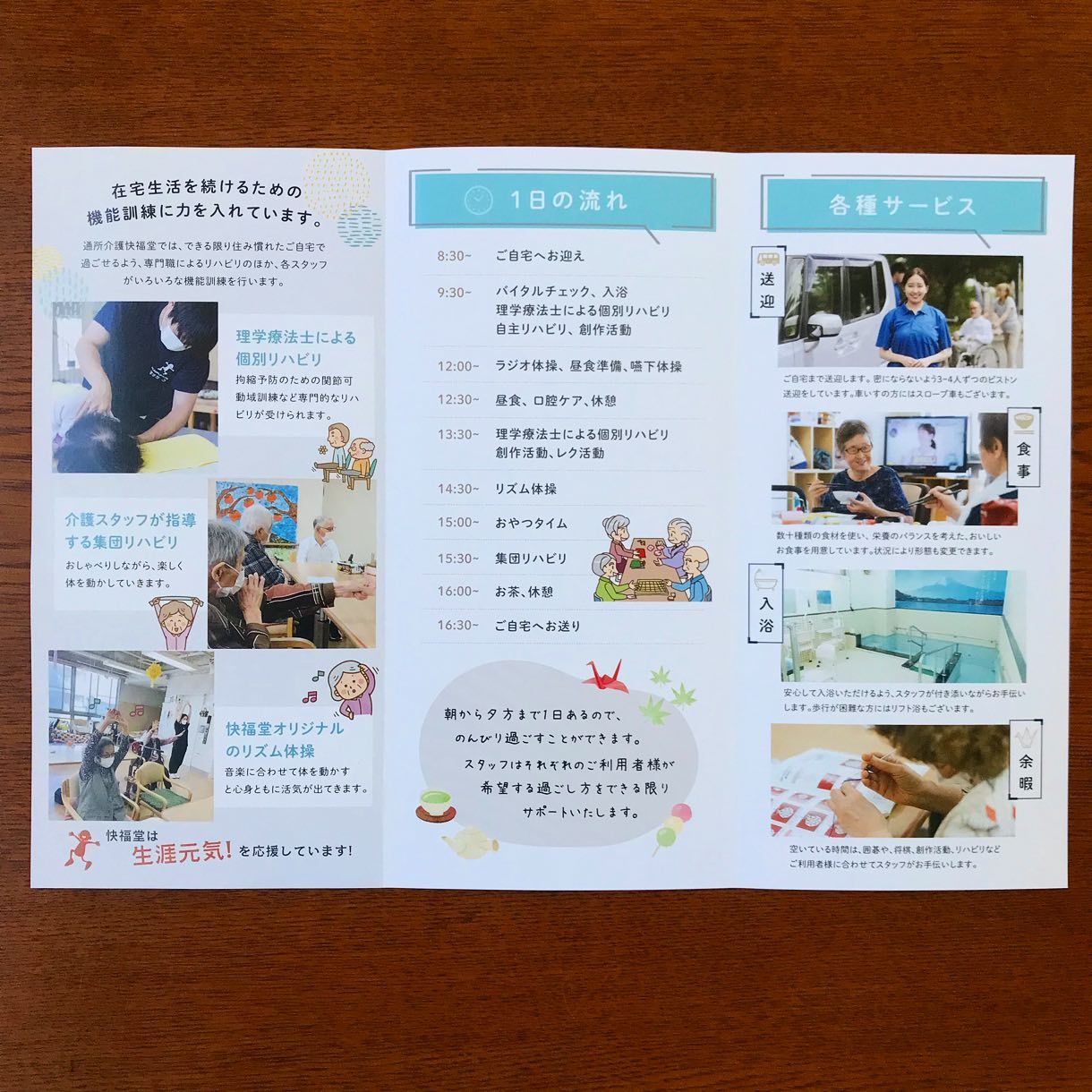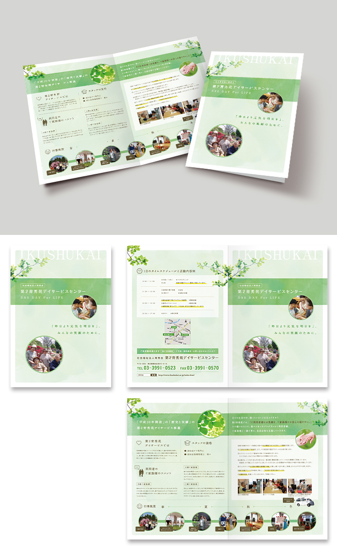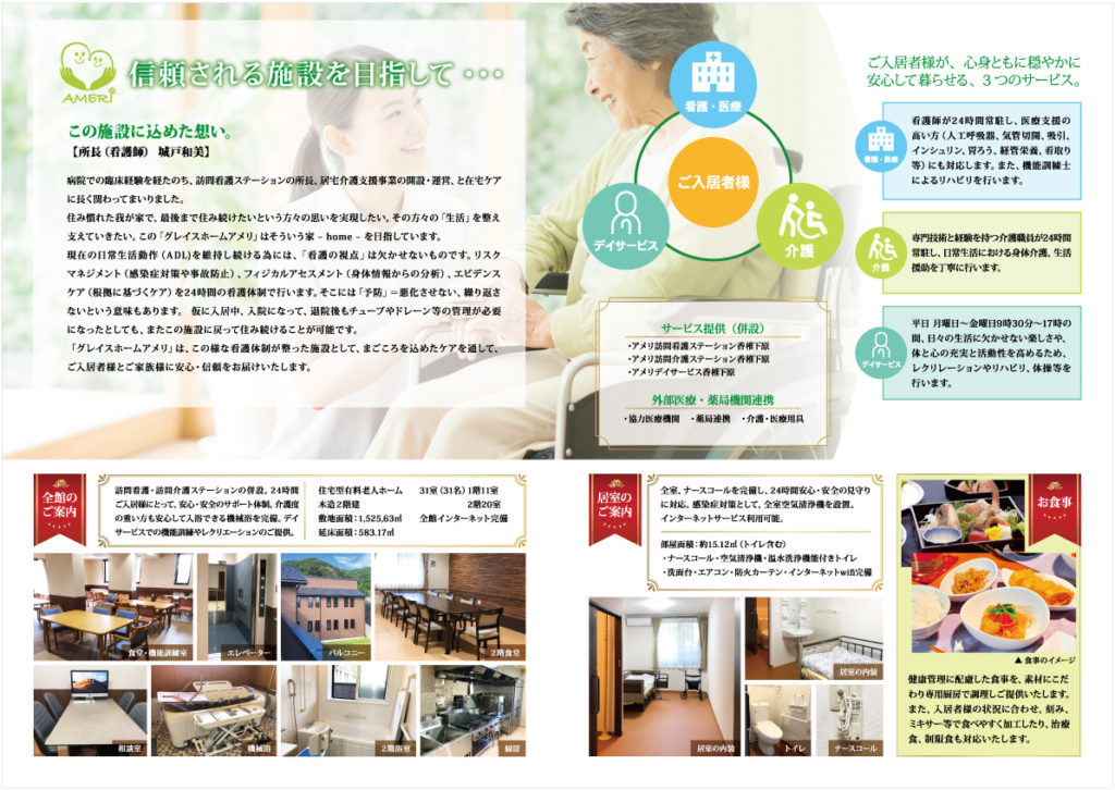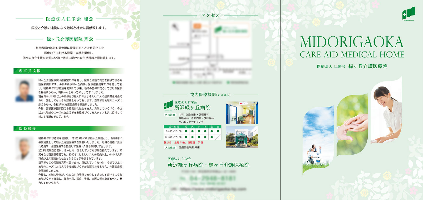 介護施設の三つ折りパンフレットながくてデザイン制作実績。