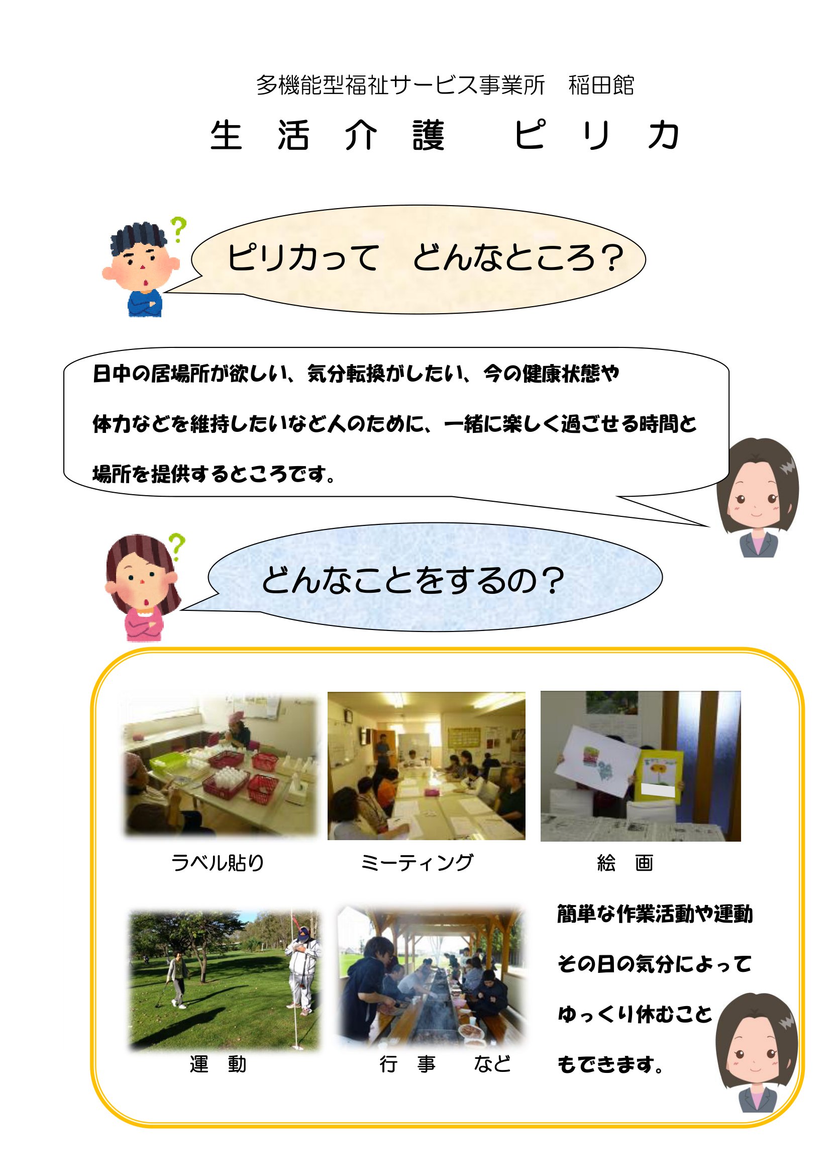 生活介護 最新パンフレットのお知らせ多機能型福祉サービス事業所 稲田館。