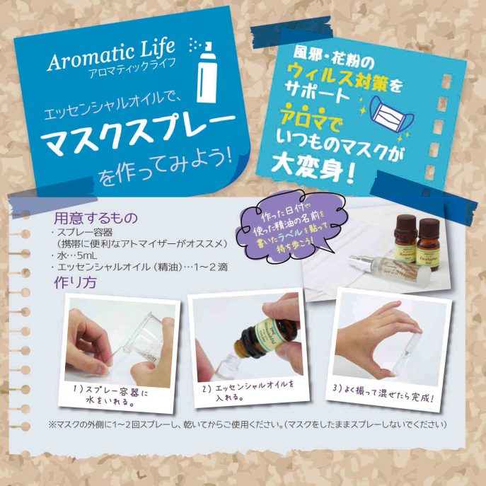 花粉・風邪ウイルスの対策をサポート!手作りマスクスプレー - DAILY AROMA JAPAN。
