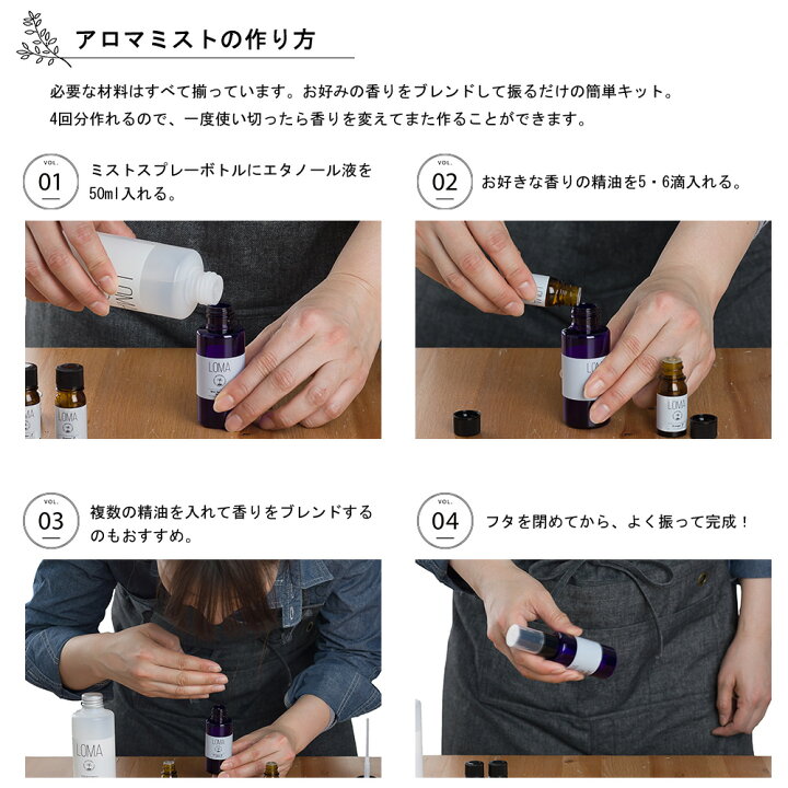 香りをDIYできる手作りアロマスプレー ルームフレグランスアロマミスト LOMAインテリア・DIY用品 友安製作所。
