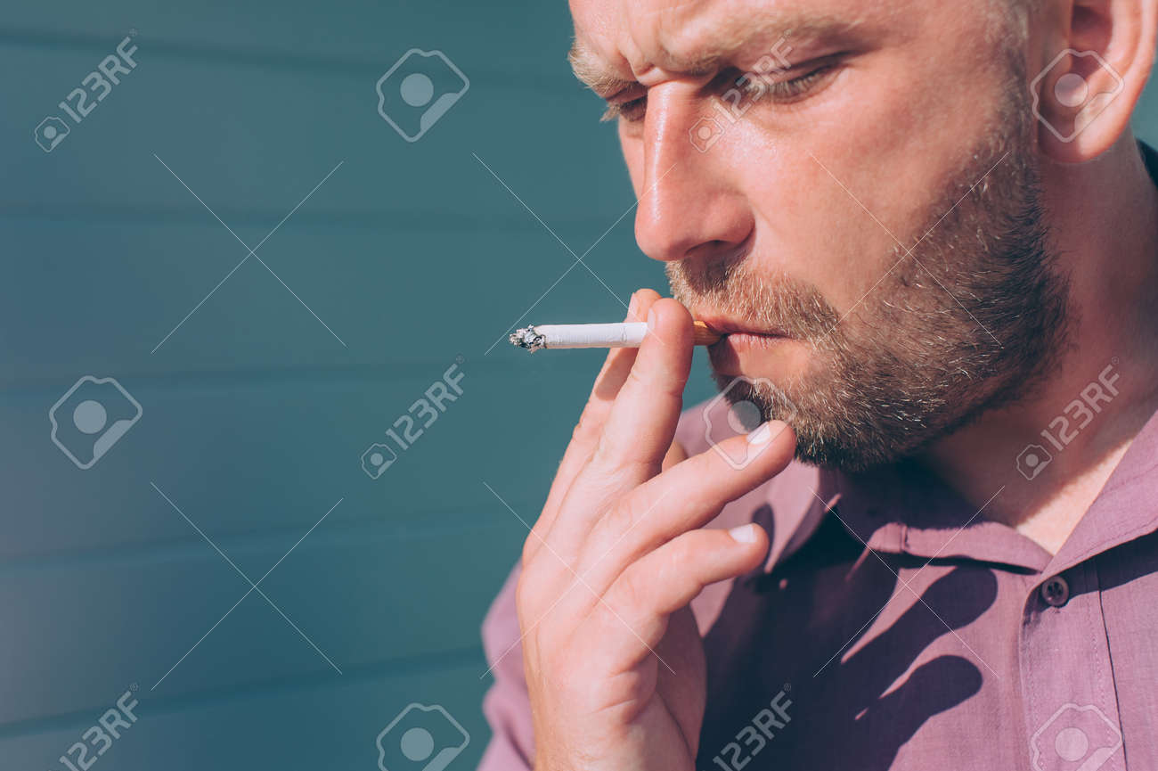 手にタバコを持った男が煙草を吸うの写真素材・画像素材 Image 154426813。