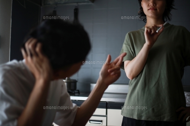 男性のタバコを取り上げる女性の写真素材FYI04985541ストックフォトの Qlean Market キュリンマーケット。