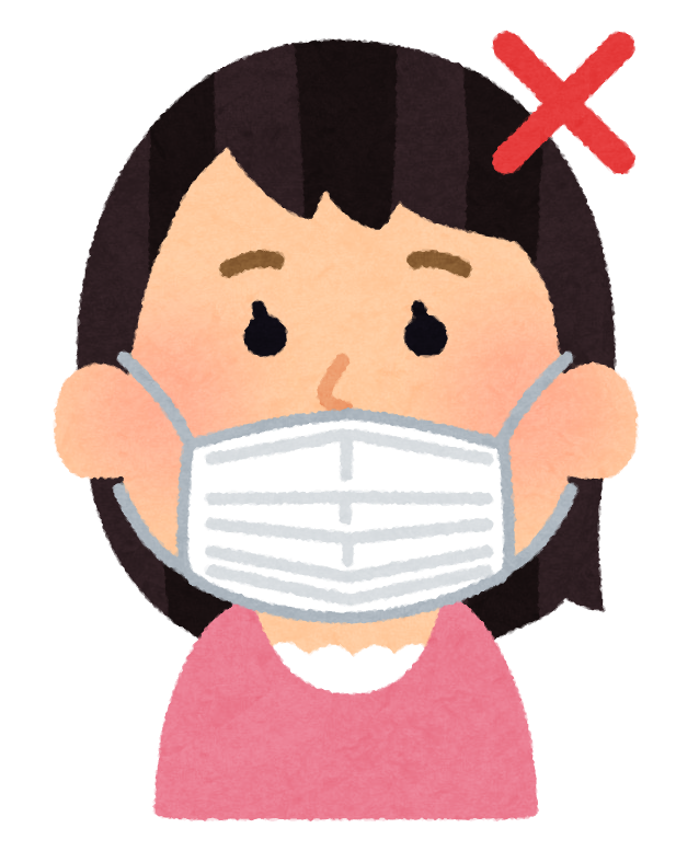 マスク着用、間違った着用マークフリー、無料で使えるイラストカット.com。