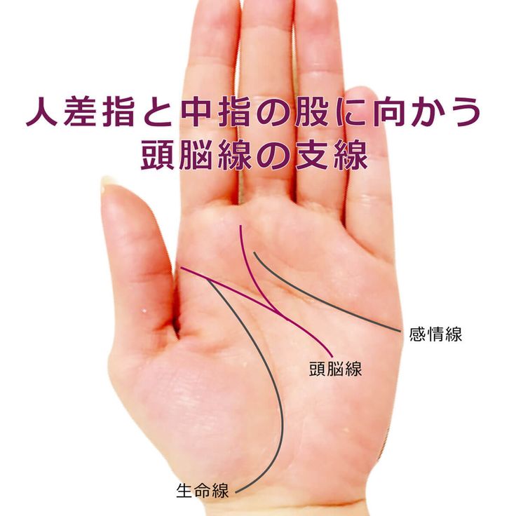 頭脳線から枝分かれした支線が人差し指と中指の中間の「股」に向かって上向きに伸びる手相の見方。