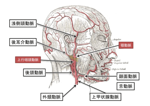 頭部の動脈 おもに外頚動脈– LAIMAN Stockweb。