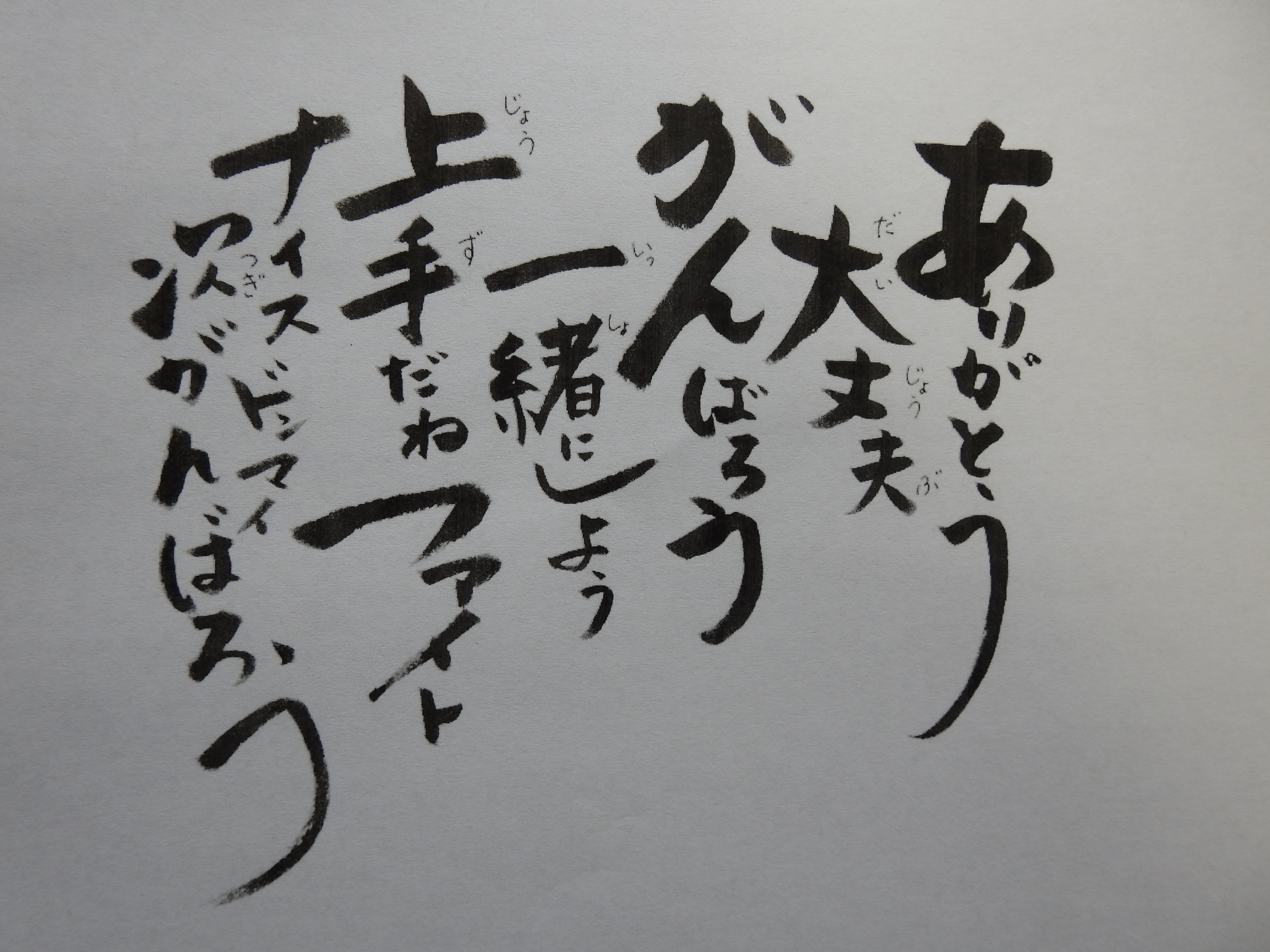 19.温かい言葉と笑顔の筆文字「さみしい時かなしい時くるしい時思い出してね・」。
