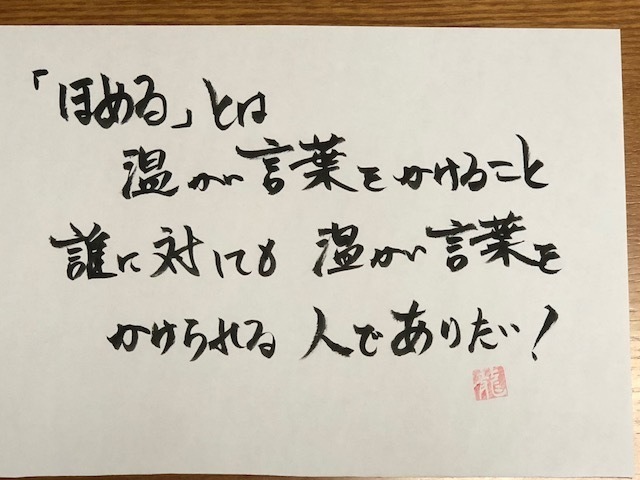 中2~3「温かい言葉」手本扇水書道教室 2022年3月 atatakai kotoba。