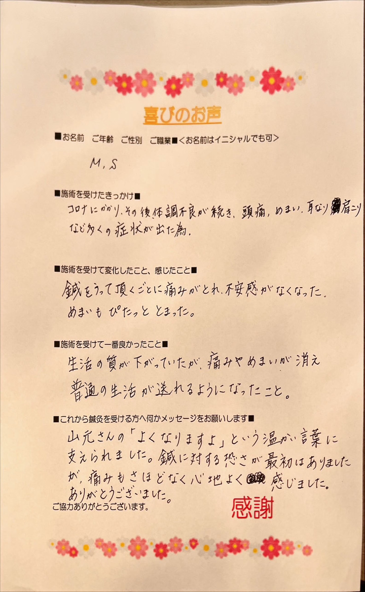 よくなりますよ」という温かい言葉に支えられました。鍼灸院ひなた 清澄白河院。