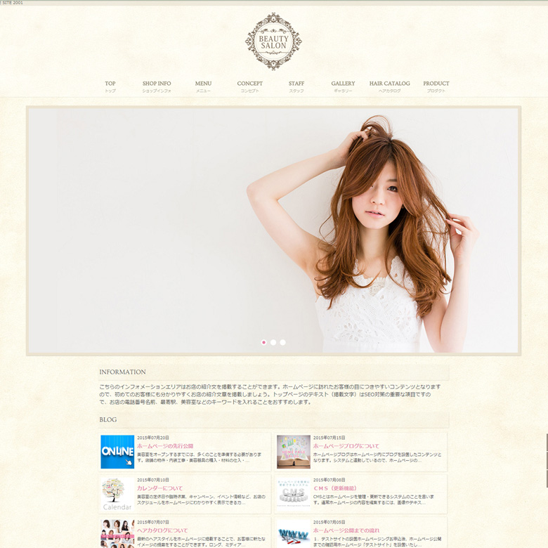 美容室のホームページデザイン例 B016 - SEO・集客ホームページ制作会社「ABCBLOG」 埼玉県所沢市。