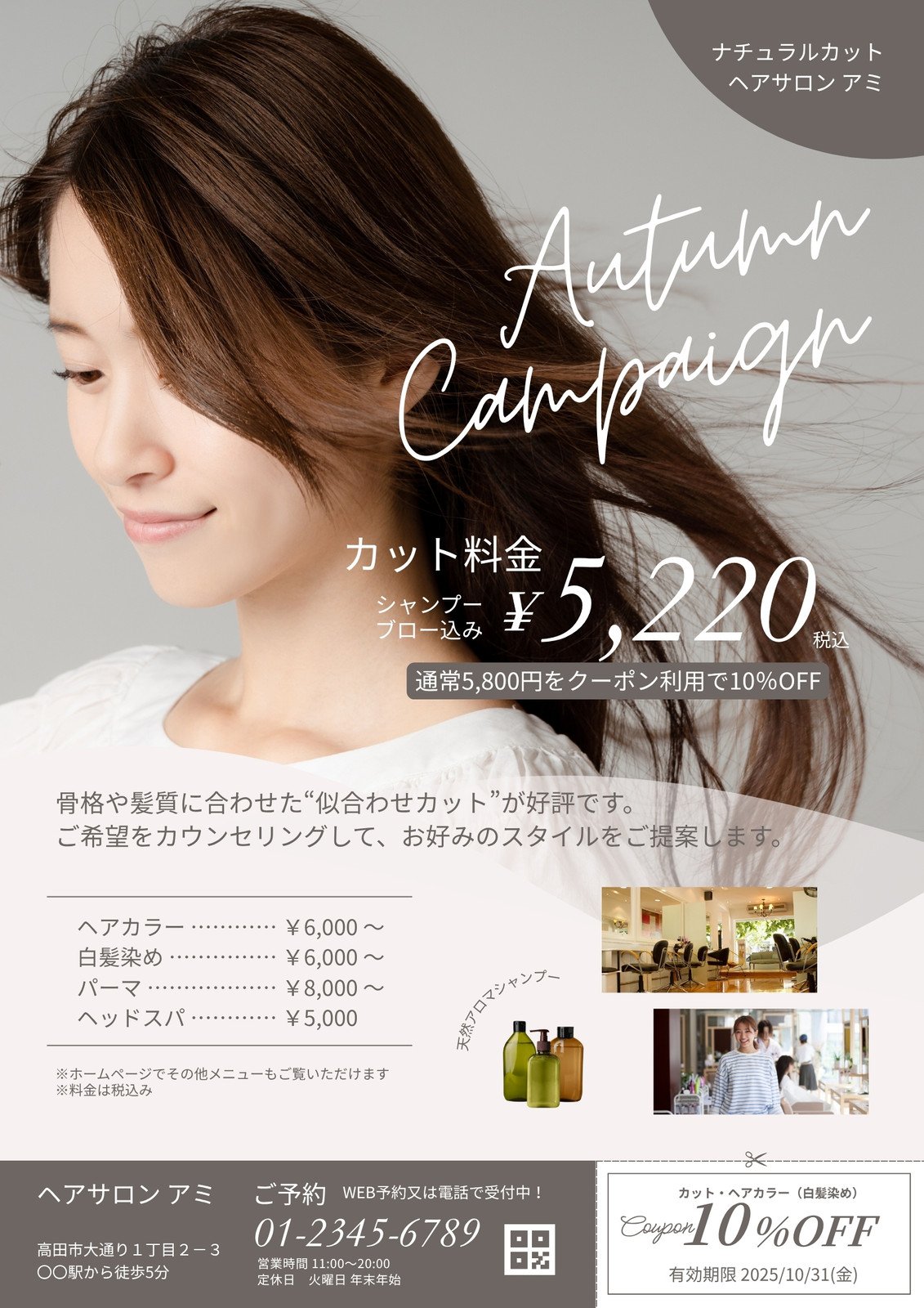 美容室・美容院のチラシテンプレートでおしゃれなヘアサロンのチラシ・フライヤーデザインを無料で作成!Canva。