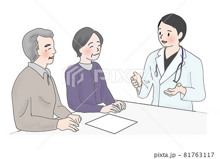 お医者さんと車いすに乗った患者さん家族のイラストのイラスト素材106992104- PIXTA。
