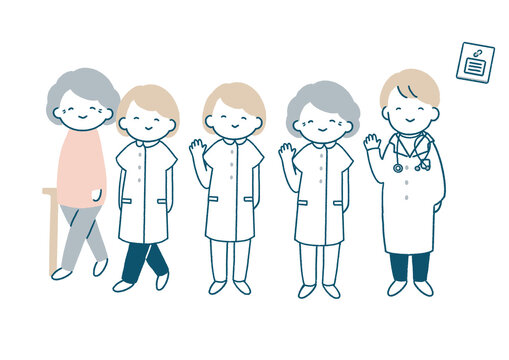 看護師と患者さんイラスト の Stock イラストAdobe Stock。
