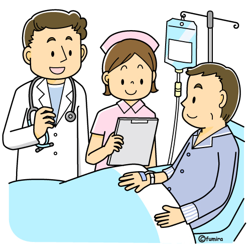 入院患者と主治医と看護師のイラスト カラー子供と動物のイラスト屋さん わたなべふみ。
