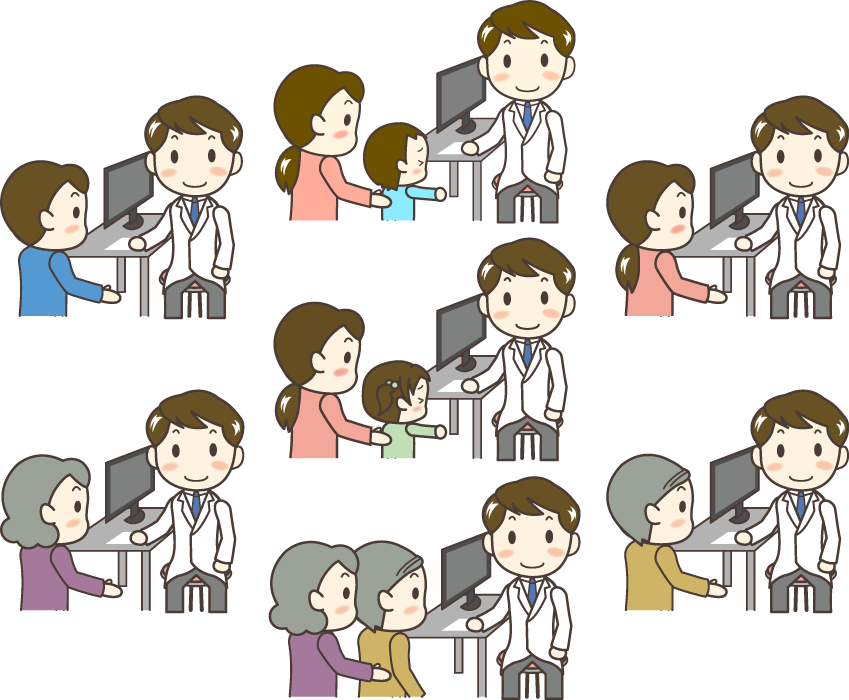 フリーイラスト7種類の診察中のお医者さんと患者のセットでアハ体験GAHAG著作権フリー写真・イラスト素材集 - GAHAG著作権フリー写真・イラスト素材集。