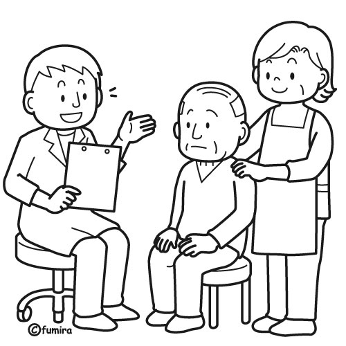 イラスト・医者に説明を受ける男性老人の患者さん ソフト。