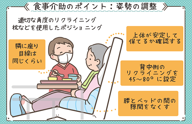図解 正しい食事介助・基本姿勢とスムーズに介助するポイント - ネスレ ヘルスサイエンス オンラインショップ。