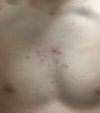 胸に帯状に部分的にみられる湿疹野田市 小児科 千葉県 こどもの花粉症 こどもの漢方 喘息 アトピー性皮膚炎 アレルギー 結節性痒疹たんぽぽこどもクリニック。
