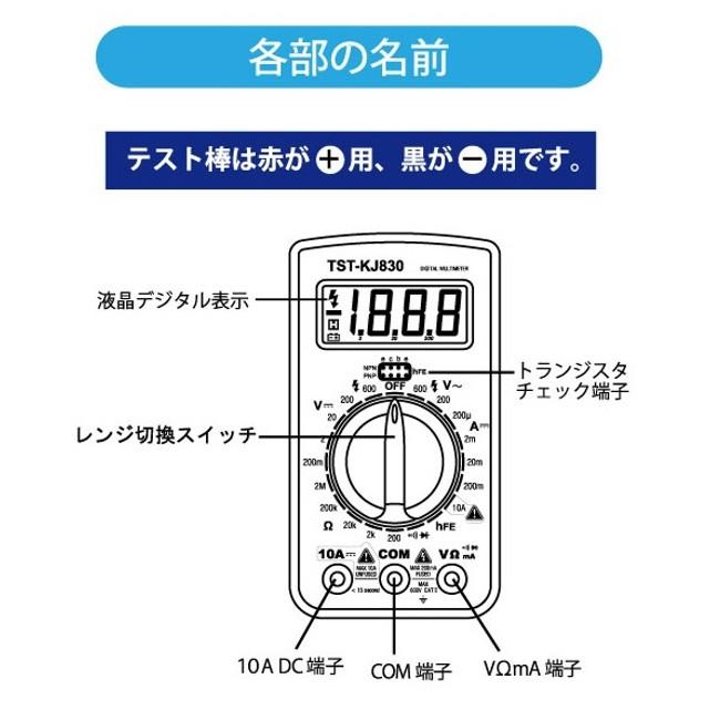 楽天市場 デジタルテスター 普及型 直流電圧 交流電圧 直流電流 抵抗 導通 ダイオード トランジスターチェック TST-KJ830 08-1288OHM オーム電機□ : モバイルショップ nn-Bay。