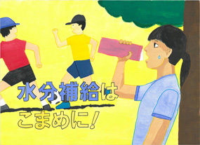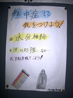 熱中症対策のポスター - 大阪府立咲くやこの花中学校。