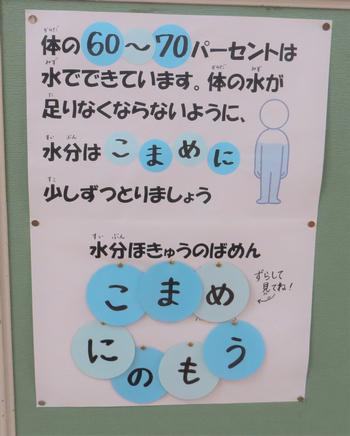 水分補給をしてください!~熱中症予防の呼びかけ 保健環境委員会養護教諭より多治見市立南姫小学校。