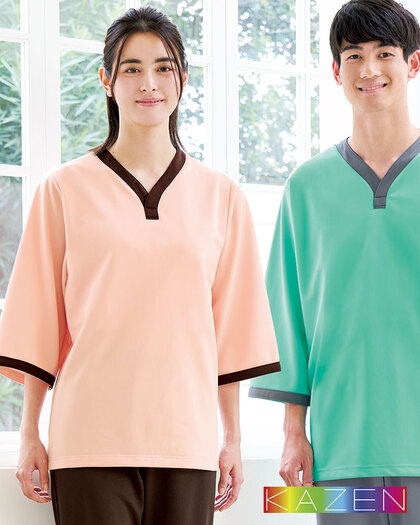 301 カゼン 検診衣 ジャケット 男女兼用 検査 上衣 Tシャツ 院内着 術前術後 病院 クリニック 健康診断 KAZEN 制電 ブルー グリーンピンク ニット 白衣ネット本店。