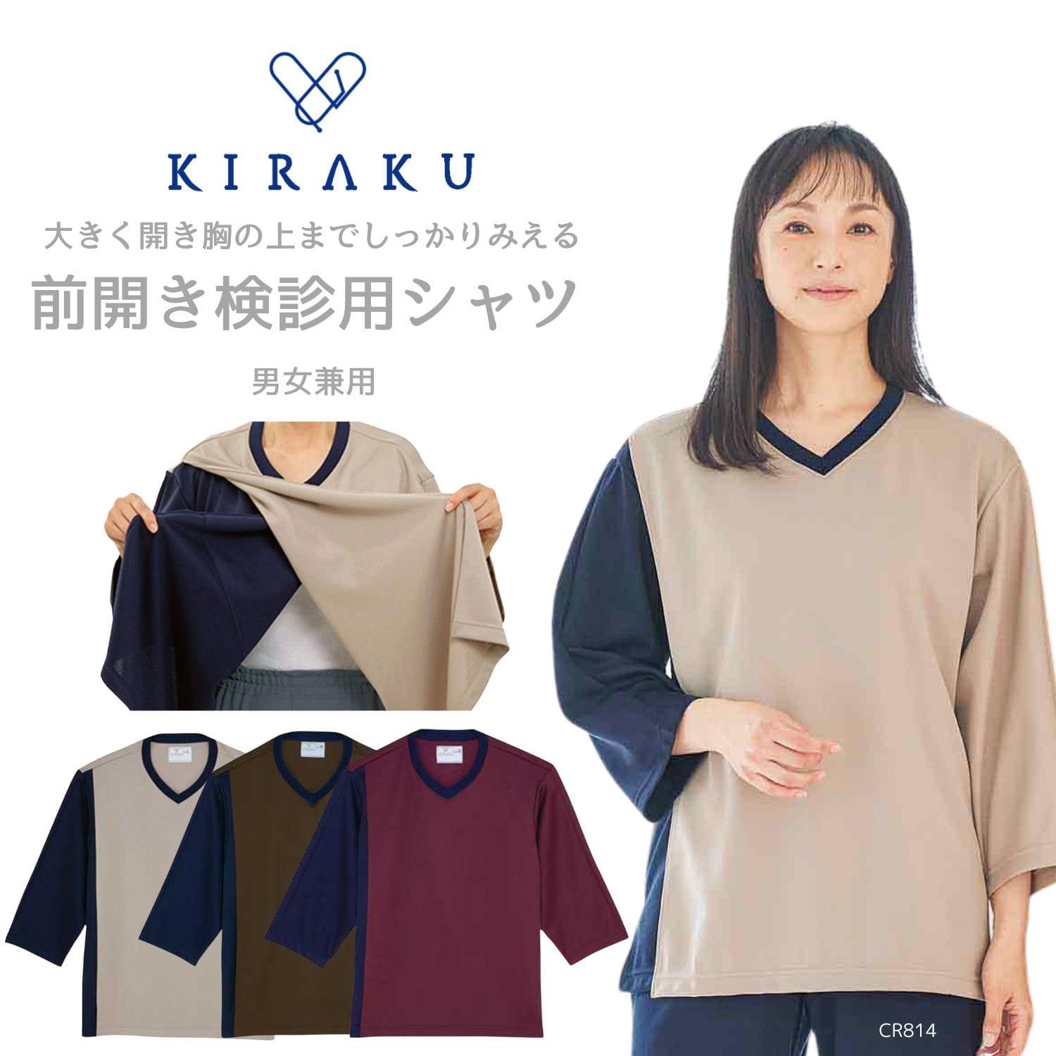 CR845 トンボ キラク 検診衣 患者衣 検診用シャツ 前開き 男女兼用 肌に優しい 工業洗濯 制電 防縮 吸汗 速乾 病院 医院 クリニック 検査検診 健康診断 TOMBOW KIRAKU。