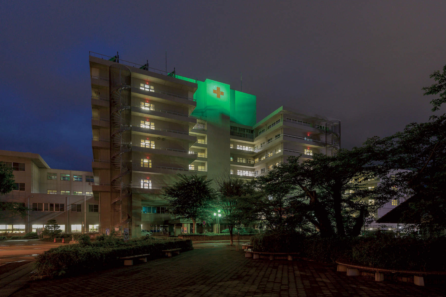 🌼おんぷ♪📎🌟 على X: "夜の病院の遠景。緑の飛行物体はドローン。夜景の外観の撮影をしていた。結城病院https:t.co SqqhNWP91n https:t.co SbJjYpoFYw"X。