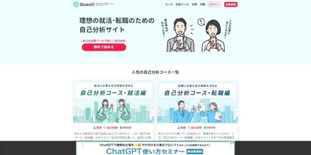 就活 転職の自己分析に必須の診断ツール!「強み&弱みアナリティクス」を正式リリース株式会社Questiのプレスリリース。